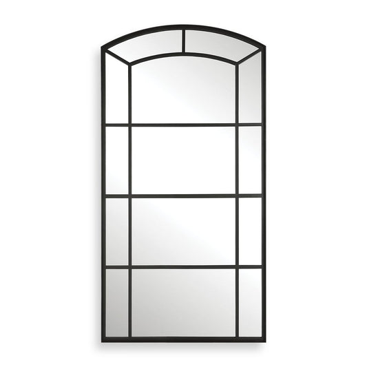 Molded frame with a unique scalloped motif finished in a lightly rubbed aged black with subtle silver undertones
