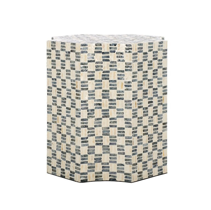Crafted from ivory man-made stone that accurately replicate the look of Thassos marble, accented by iron details