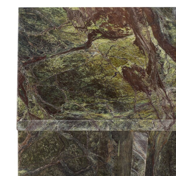 Elevate your home decor with the elegant Blello 16 in. Marble Accent Table in captivating green and brown. This exquisite piece seamlessly combines form and function, offering a striking visual element to any room. Crafted from luxurious marble, each table boasts unique veining patterns, ensuring it is a one-of-a-kind addition to your space.