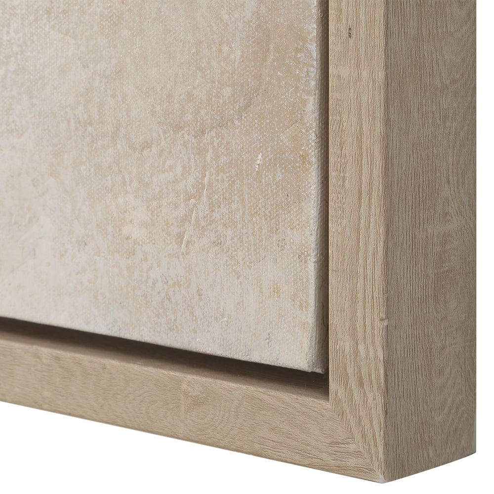 This hand painted artwork features an artful composition of soft, diffused neutrals that mimick smoke. The gentle color palette is beautifully complemented by a natural pine finished frame. Due to the handcrafted nature of this artwork, each piece may have subtle differences. This piece may be hung horizontal or vertical.