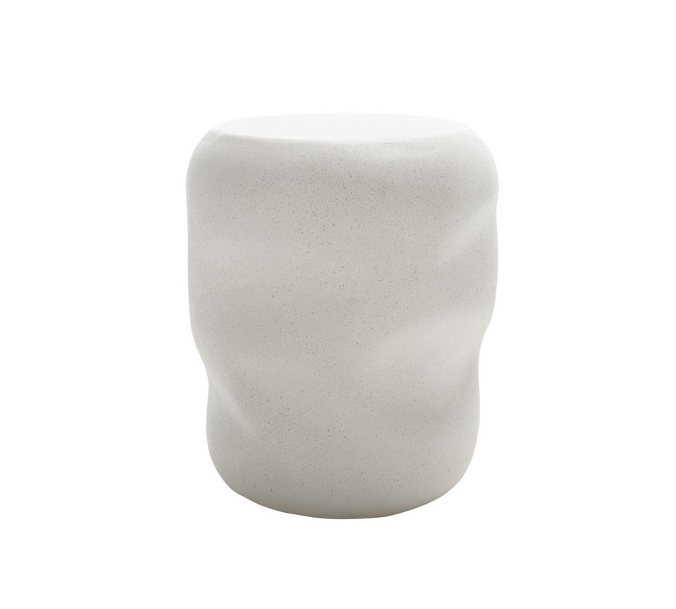 Give a contemporary update to your home with our stunning Molfetta accent table. The solid body of the table is softened with sculptural impressions to offer endless texture and visual appeal. Its fluid body stands out with soft and eye-catching curves. The organic impressions upon the surface are accentuated by a subtly speckled, plaster-like white finish. Making a bold and artful statement next to your sofa or lounge chair, our accent table lends a perfect perch to your essentials and favorite decor items.