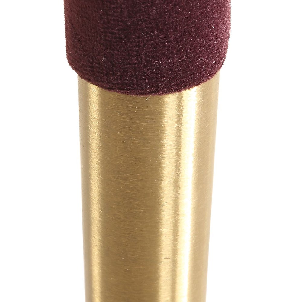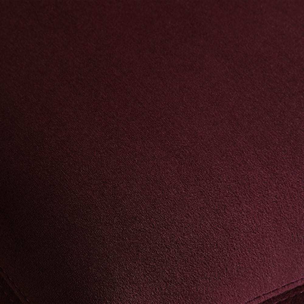 Perfect for modern dining, this armless chair features sleek lines covered in a plum polyester velvet accented with brushed brass ferrules.